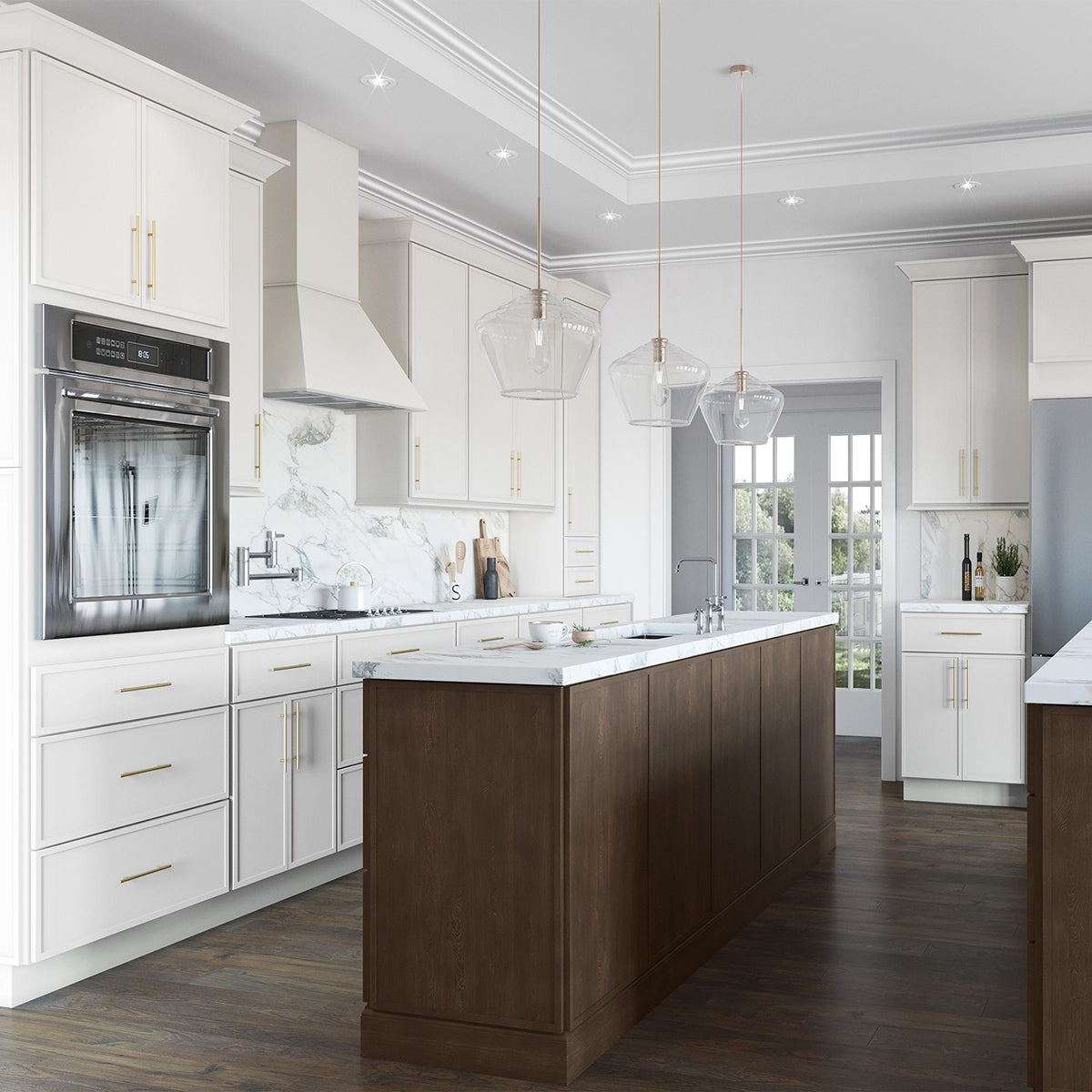 CabinetsHQ.com offers the Nexus collection, featuring wide frames and minimalistic detailing that blend conventional and transitional styles. Frost cabinets, with their bright, clean, and modern design, serve as the ideal foundation for a dream white kitchen. The collection includes full overlay doors, solid wood frames, Blum Compact Clip Concealed Hinges with Blumotion Soft-close, and ⅝” solid wood drawer boxes with dovetail construction.