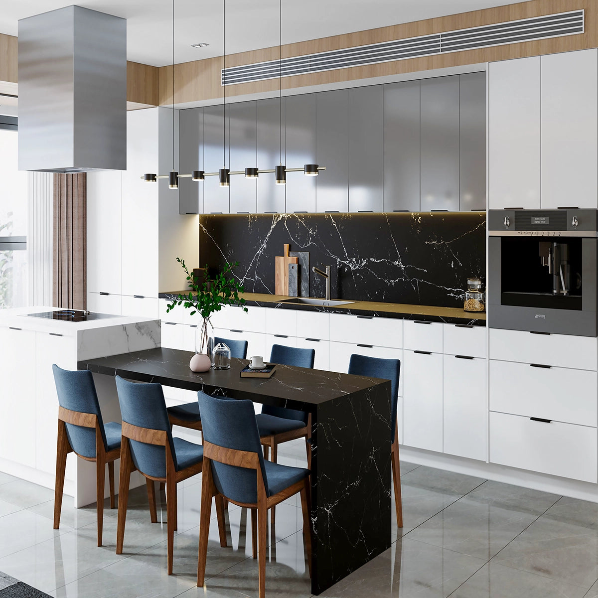 CabinetsHQ.com presents the Onyx line, featuring clean-cut, shaker-style cabinets perfect for both modern and traditional kitchens. With solid wood door frames, Blum Compact Clip Concealed Hinges, and Blumotion Soft-close technology, these cabinets offer a durable and stylish foundation for your dream kitchen