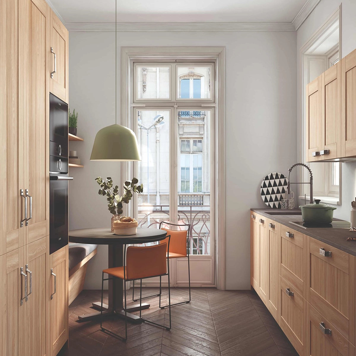 - Structure: Frameless, or "European-style," cabinets do not have a face frame. The cabinet doors attach directly to the sides of the cabinet box, providing a sleek and simple look.