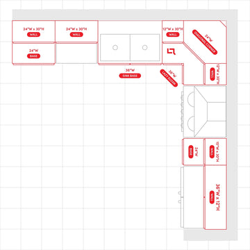 At CabinetsHQ.com, we provide a full kitchen layout in the most popular cabinetry designs, including the highly sought-after L-shaped kitchen. Our value proposition includes free 3D kitchen design services for any custom cabinetry layouts, ensuring you get a personalized and visually stunning kitchen plan tailored to your needs. With our expert design assistance and wide range of layout options, colors, and door styles, you can confidently create the kitchen of your dreams.