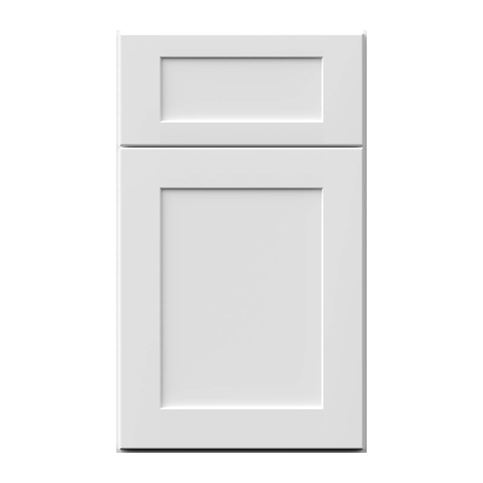 White shaker door sample from the Allure series Galaxy collection of cabinets in frost finish from Fabuwood Cabinetry Corp. Sample doors from Cabinets HQ come in two convenient sizes: small and large. The small sizes let you easily line up multiple options, helping you envision different combinations for a perfectly coordinated kitchen. The large sizes showcase the actual door dimensions with a door and drawer front, giving you a true impression of the cabinet.