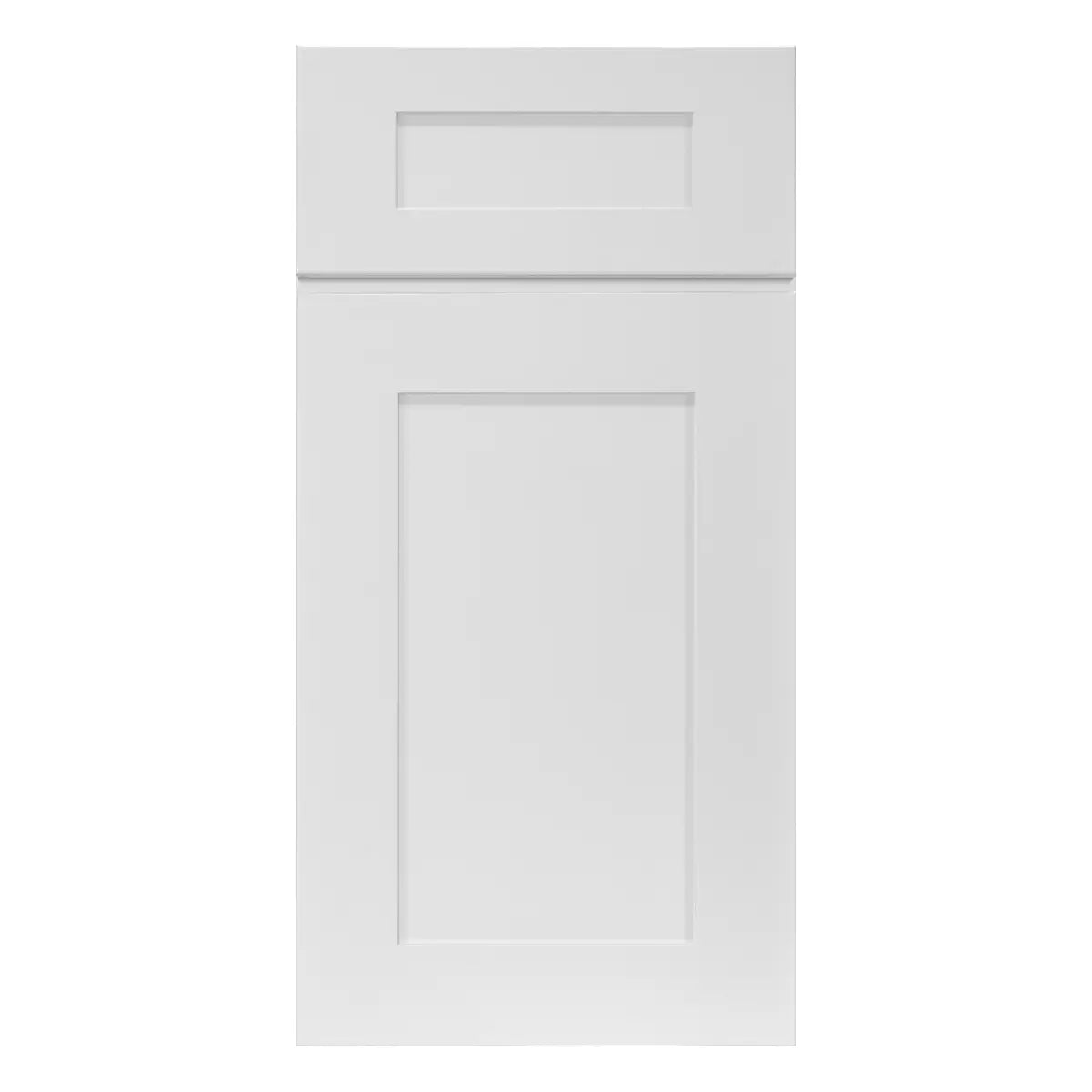 - Craft Cabinetry shaker Door Sample in a painted white finish.